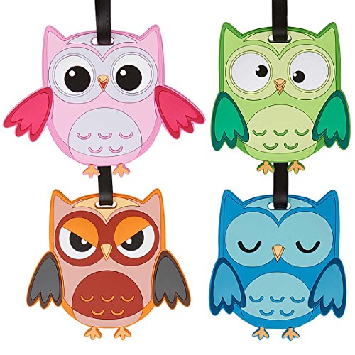 Best Seller! Bundle Monster 4pc Fun Mixed Owl Design Silicone Luggage ID Bag Tags - Set 5: What a Hoot! Review